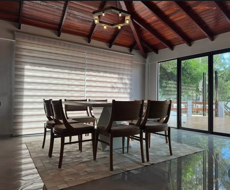 - Casa principal : Cuenta con sala amplia, con comedor integrado, al estilo americano con aire acondicionado de 36.000 Btu.